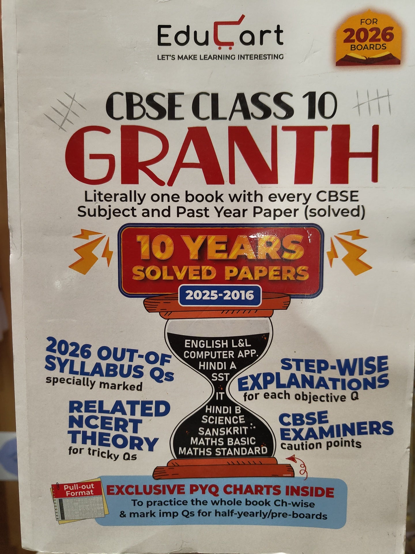 वस्तुतः प्रत्येक सीबीएसई विषय और पिछले वर्ष के प्रश्नपत्र (हल) के साथ एक पुस्तक
